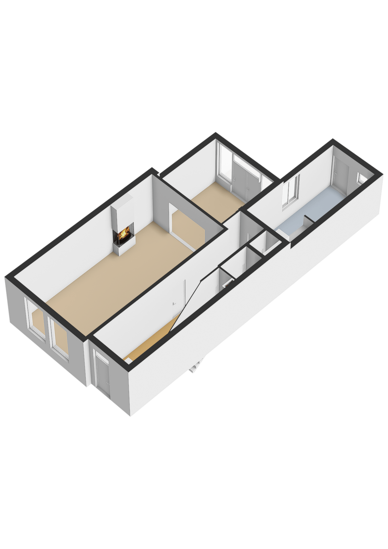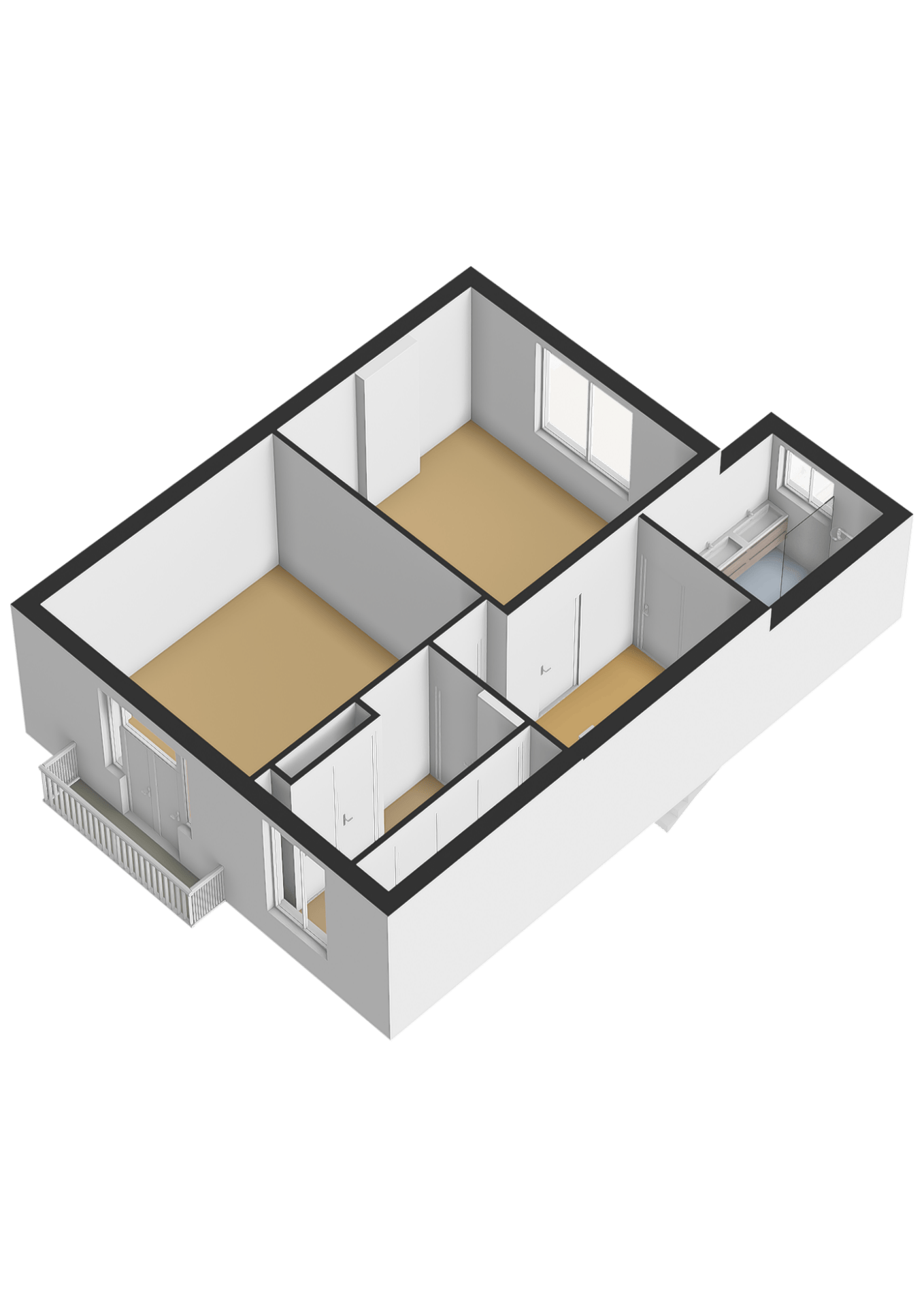Vanuit de overloop zijn de twee slaapkamers, de kleedkamer (optionele extra slaapkamer) en de badkamer bereikbaar.