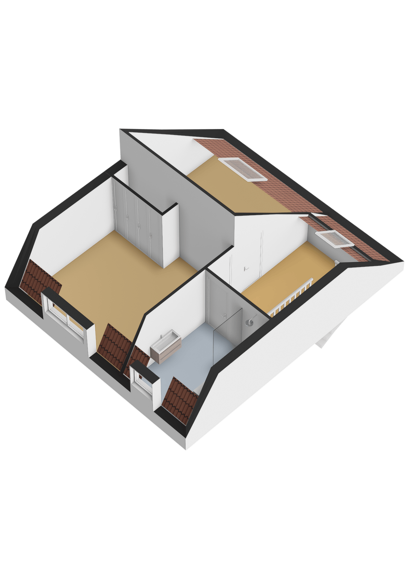 In de derde slaapkamer hangt een airco. Er ligt vloerbedekking en er is een Velux dakraam met screen aanwezig. De vliering zorgt voor extra opbergruimte. De vierde slaapkamer is voorzien van vloerbedekking en een dakkapel.