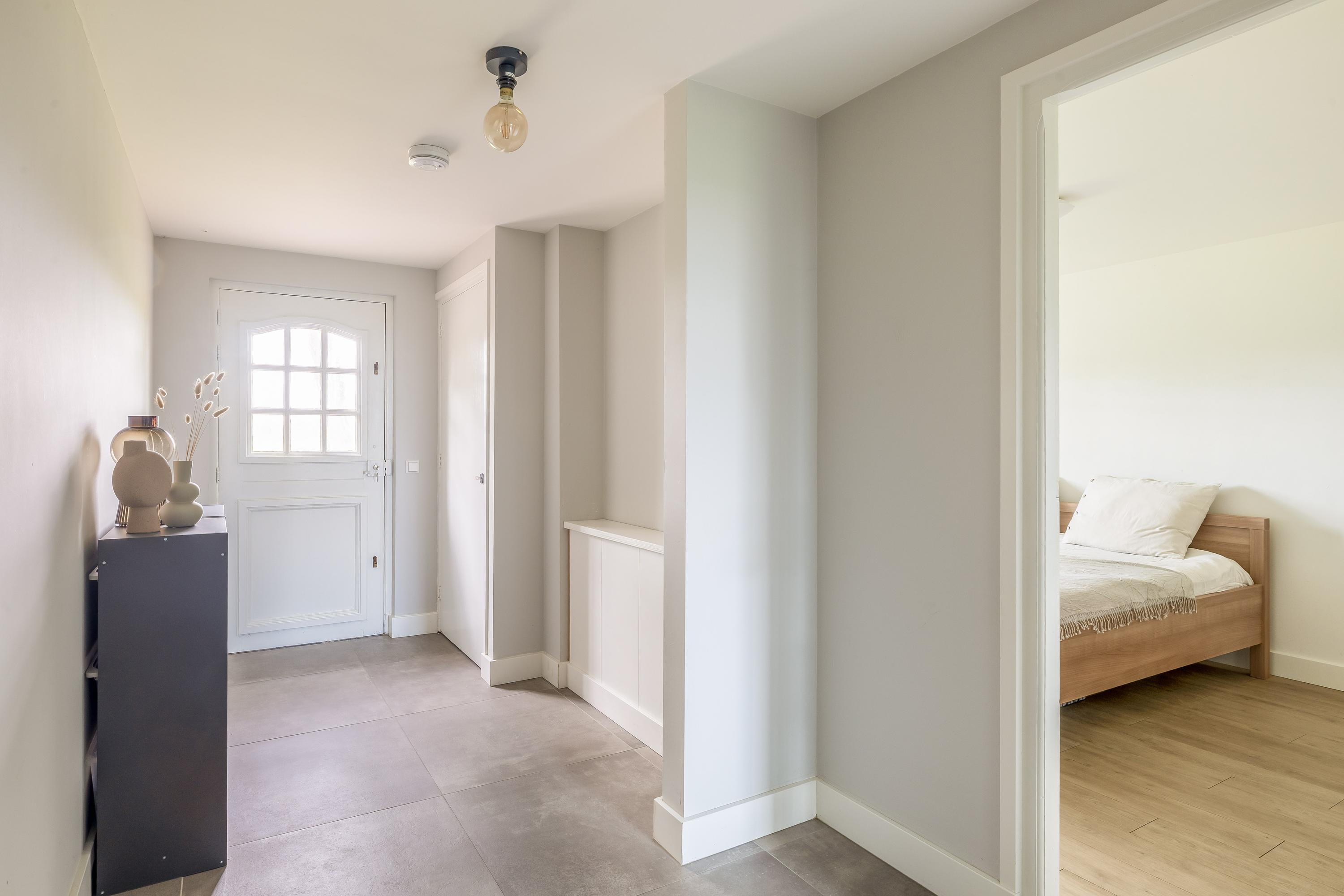 Vanuit de corridor is er directe toegang tot de tuin en het achterhuis.