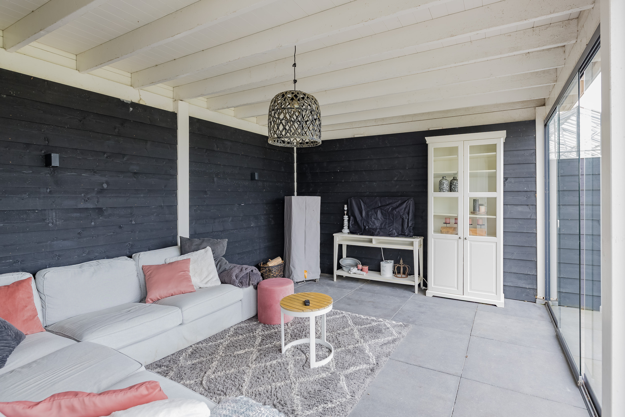 In de tuin staat bovendien een sfeervol tuinhuis met glazen deuren en een eigen terras: perfect als loungeplek, hobbyruimte of gastenverblijf.