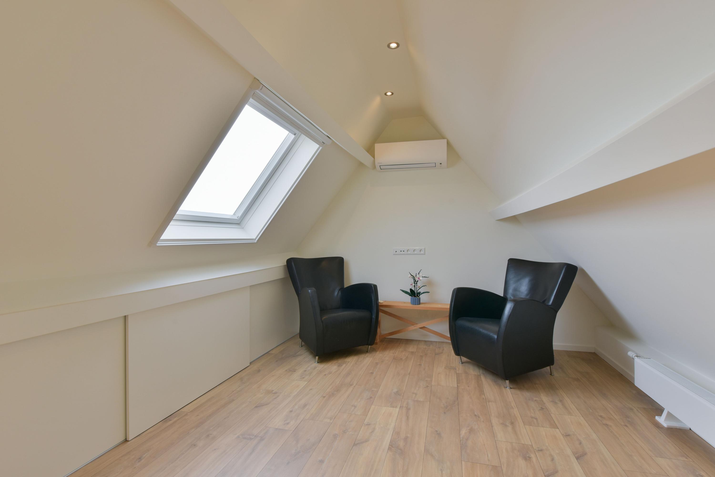 De tweede verdieping is via de vaste wenteltrap bereikbaar en biedt nog eens twee slaapkamers, waarvan de kamer aan de achterzijde eveneens is voorzien van airconditioning. Beide kamers beschikken over een tv-aansluiting en ook vaste internetaansluiting en zijn netjes afgewerkt met laminaat en inbouwspots. Op de overloop bevindt zich daarnaast een praktische en ruime berging waarin netjes weggewerkte 2e CV-installatie van 2020.