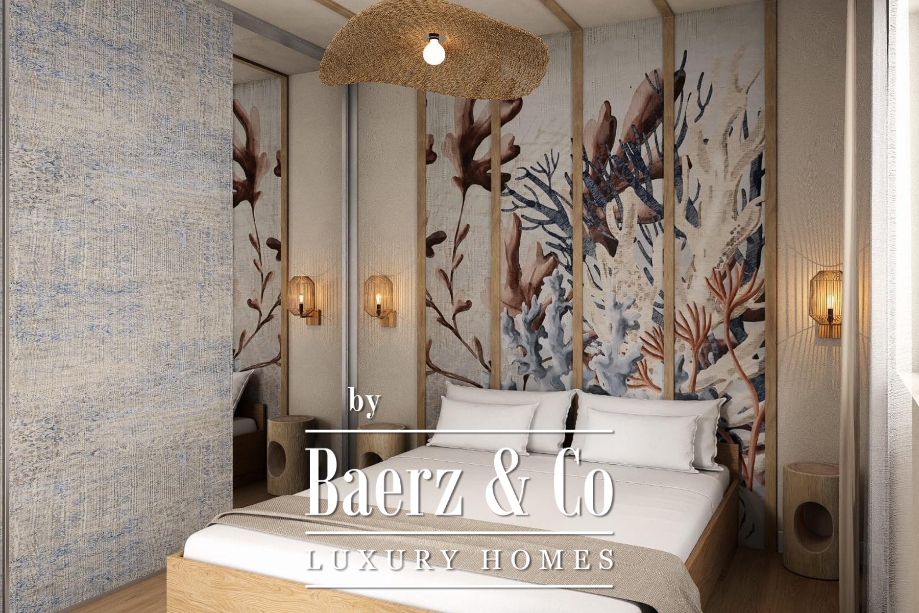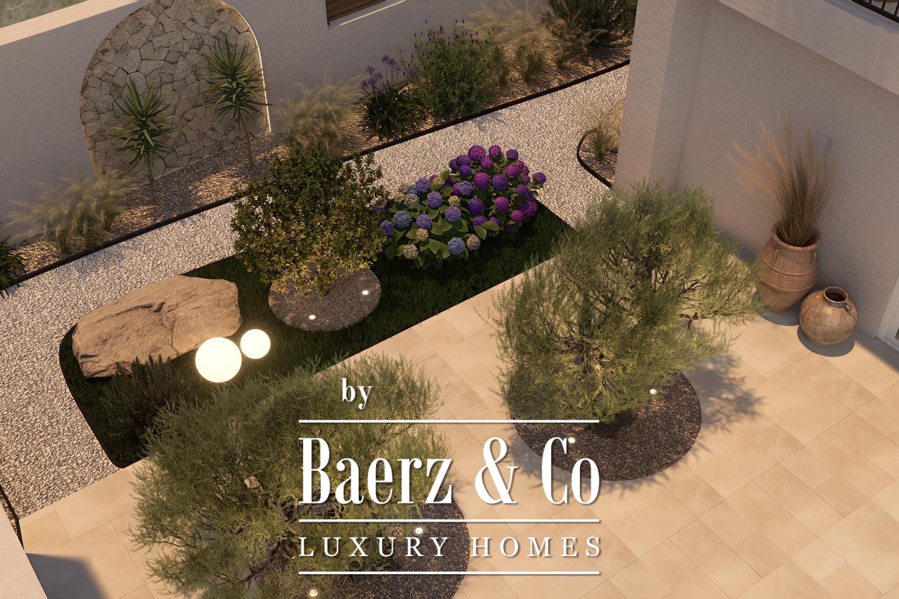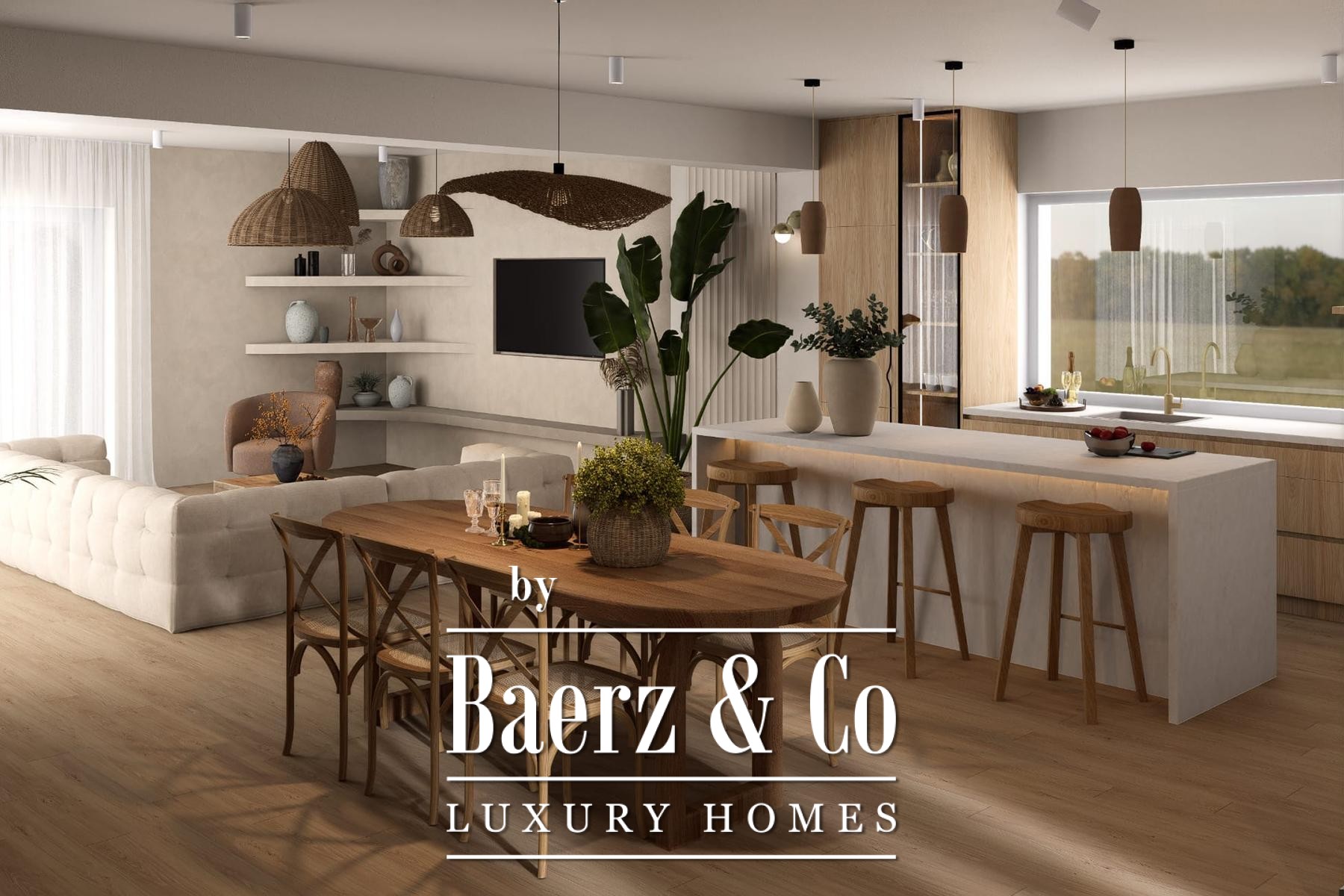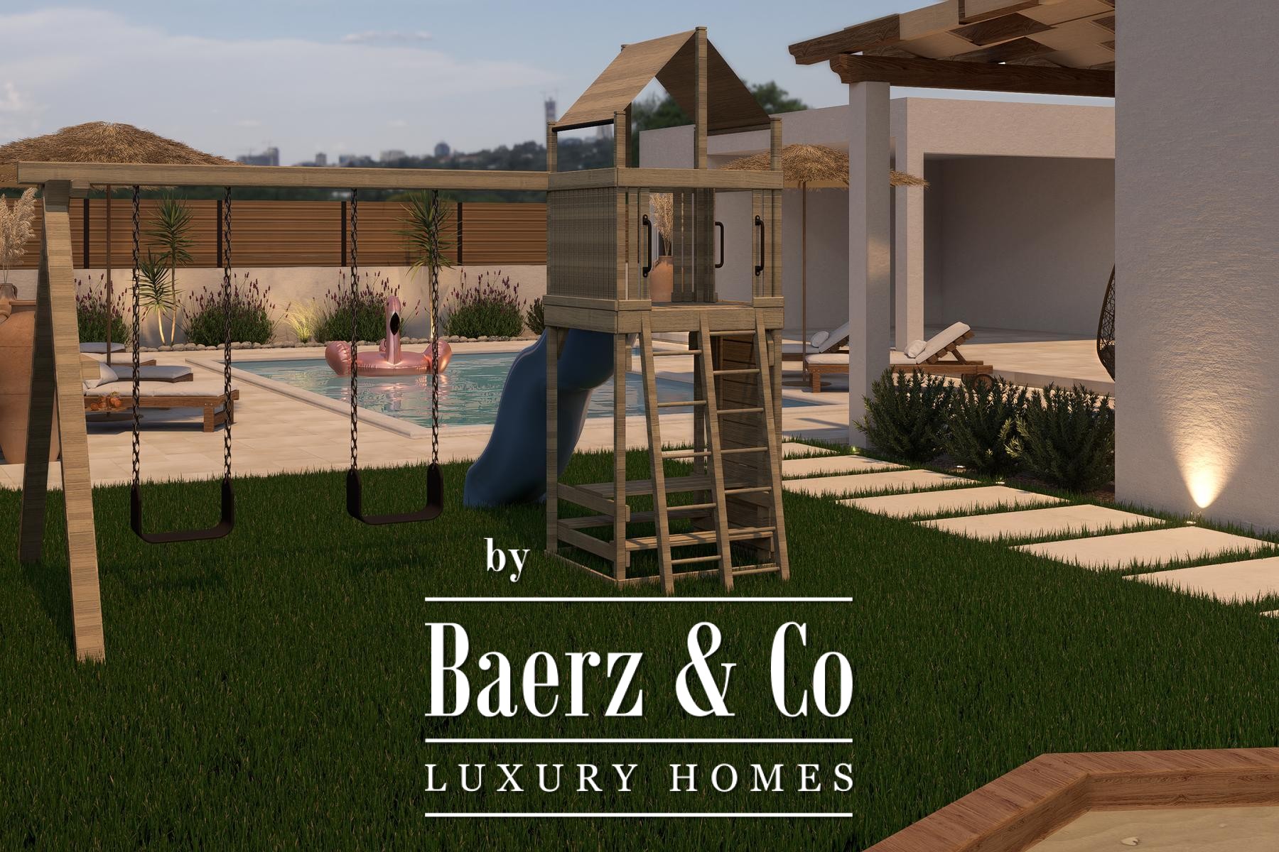 Op de bovenverdieping bevinden zich drie slaapkamers en twee badkamers, die uitkomen op een overdekt terras en zorgen voor een natuurlijke lichtinval en frisse lucht. Zorgvuldig gekozen materialen – natuursteen, hout en hoogwaardige afwerking – verankeren de villa in ingetogen luxe en bieden een warme uitstraling.