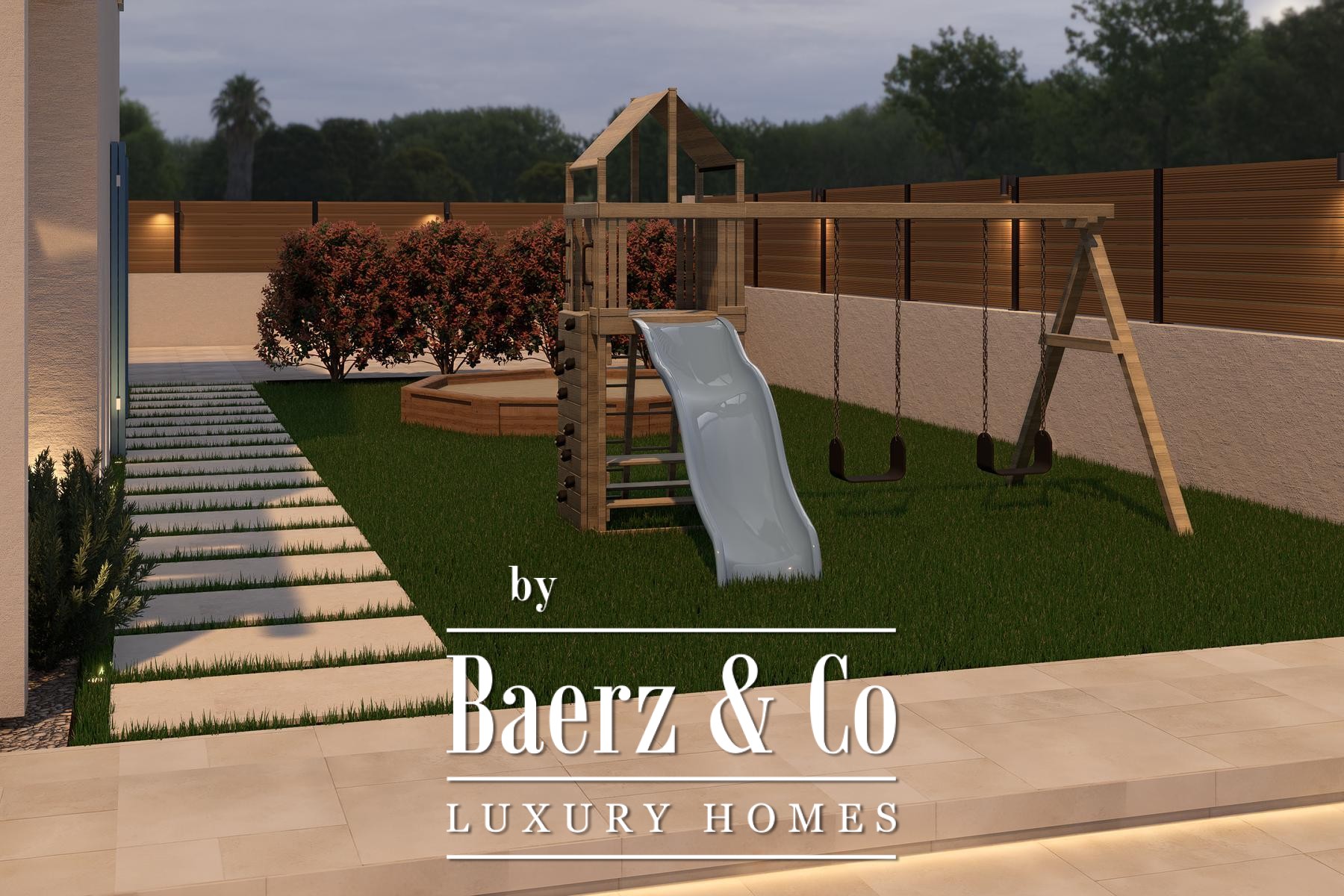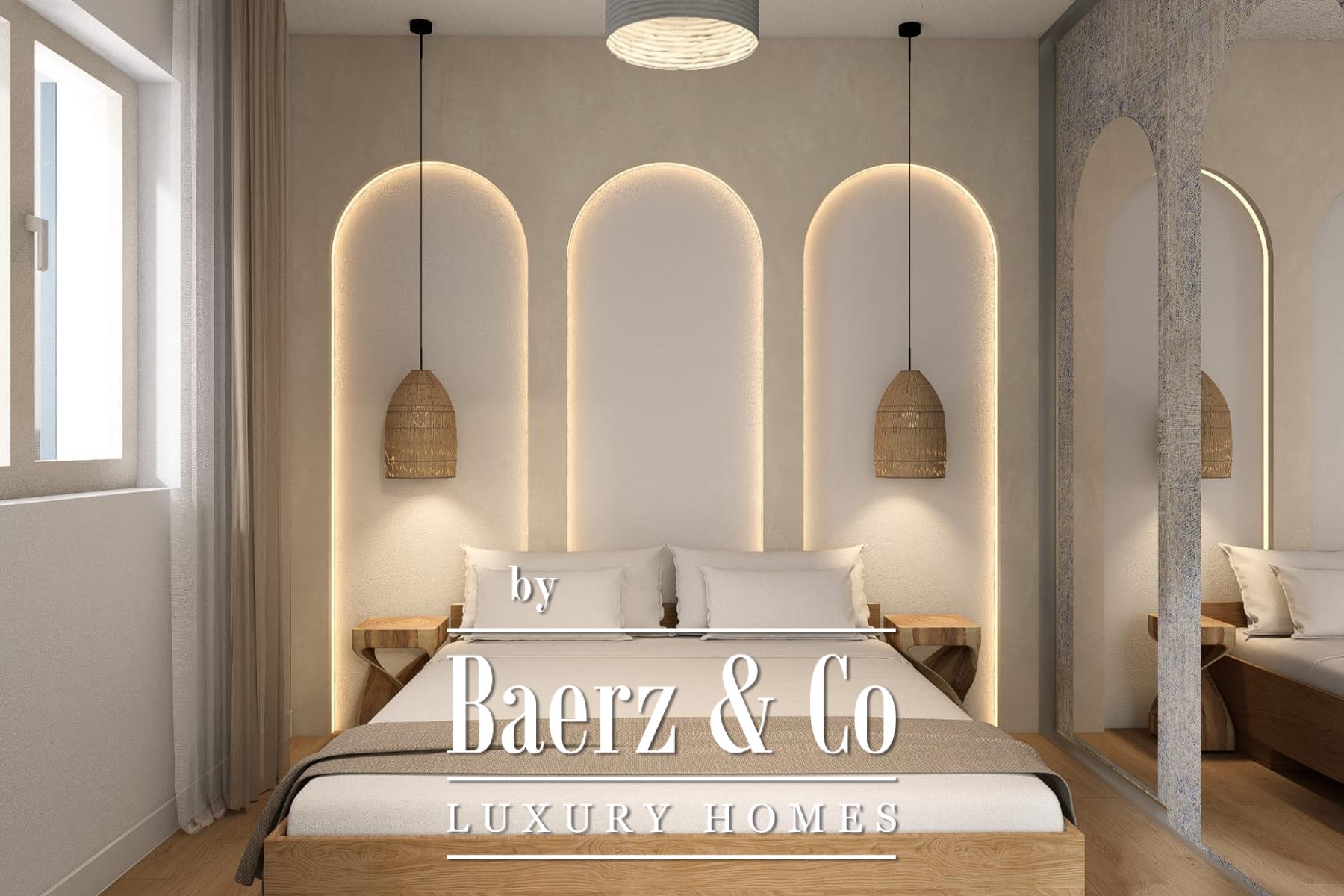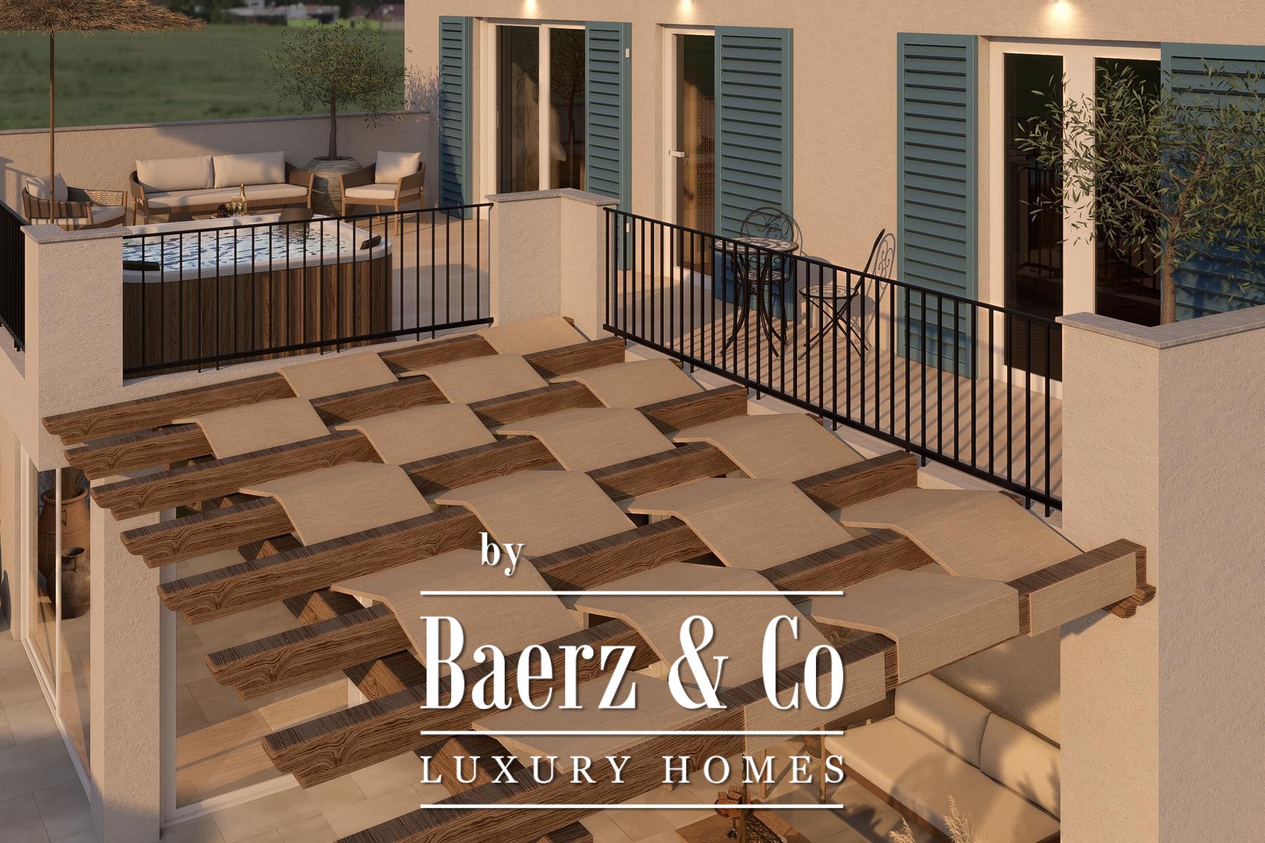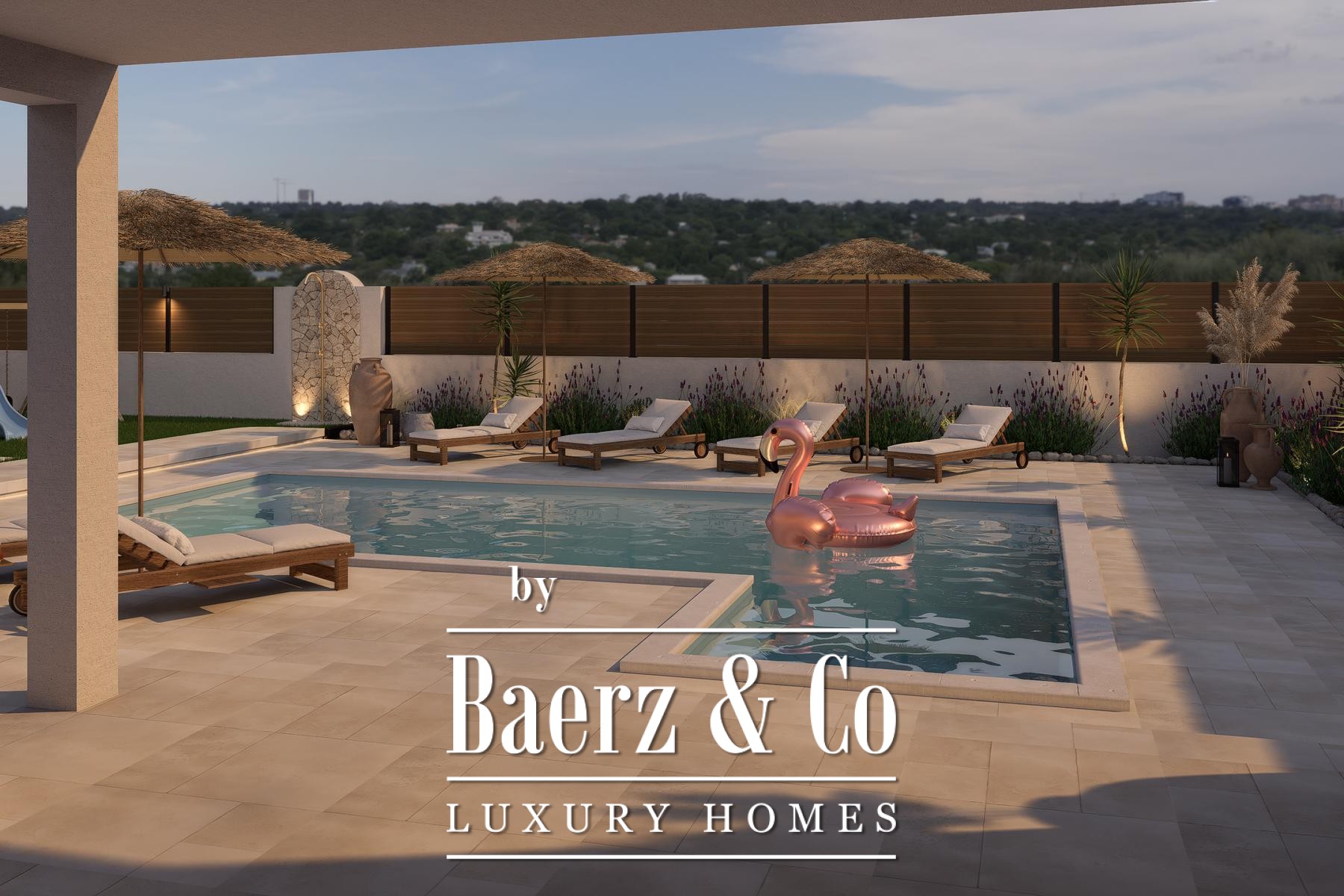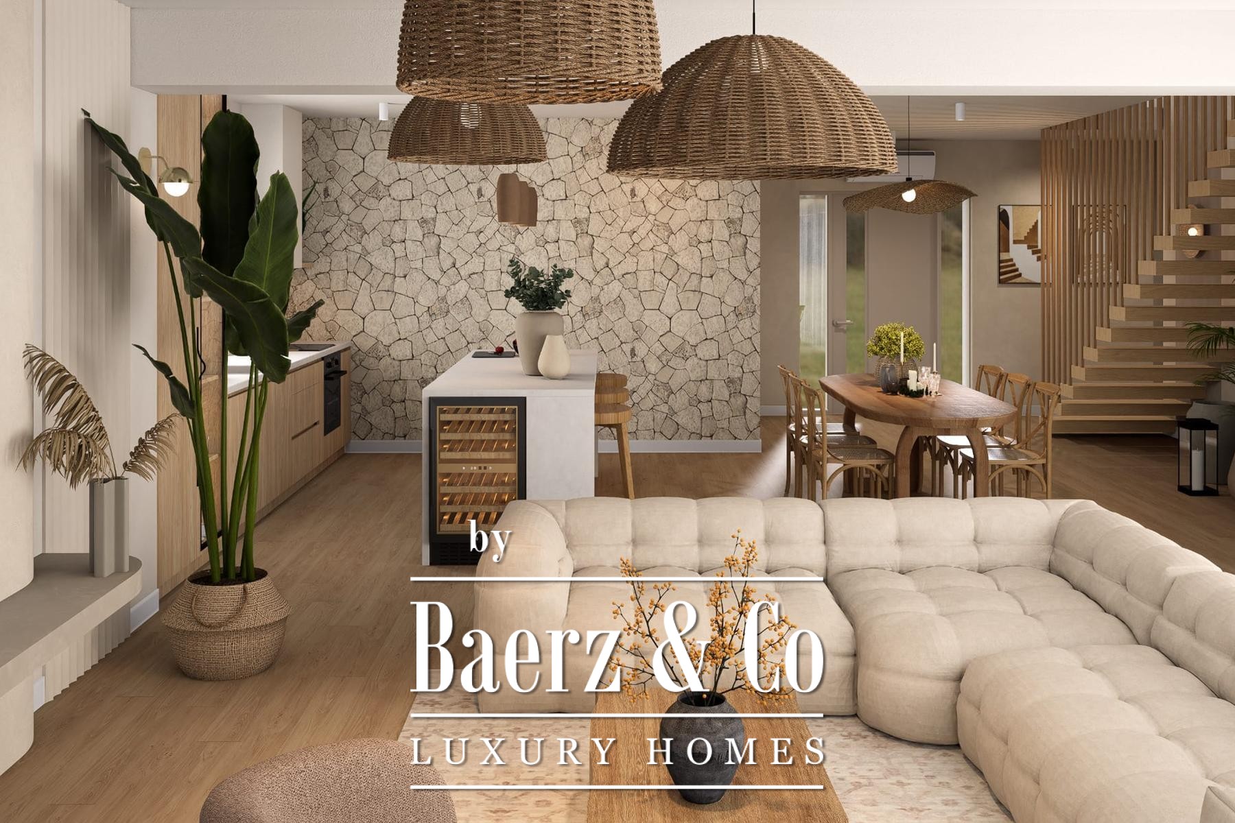 Op de bovenverdieping bevinden zich drie slaapkamers en twee badkamers, die uitkomen op een overdekt terras en zorgen voor een natuurlijke lichtinval en frisse lucht. Zorgvuldig gekozen materialen – natuursteen, hout en hoogwaardige afwerking – verankeren de villa in ingetogen luxe en bieden een warme uitstraling.