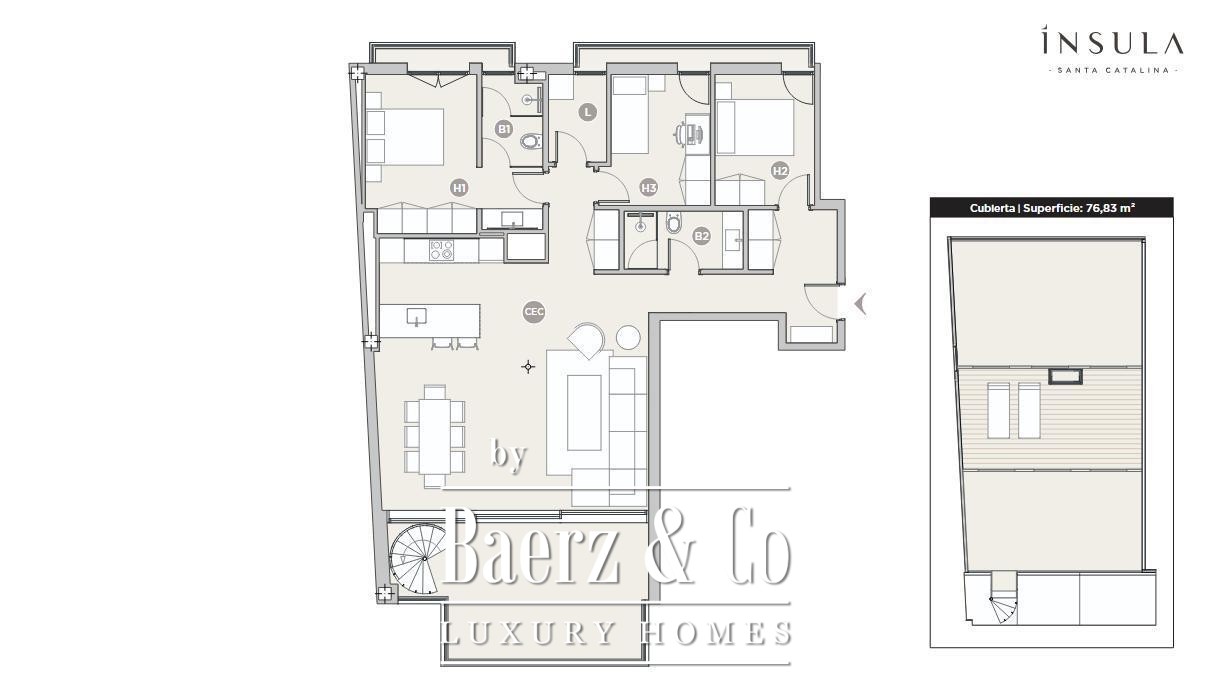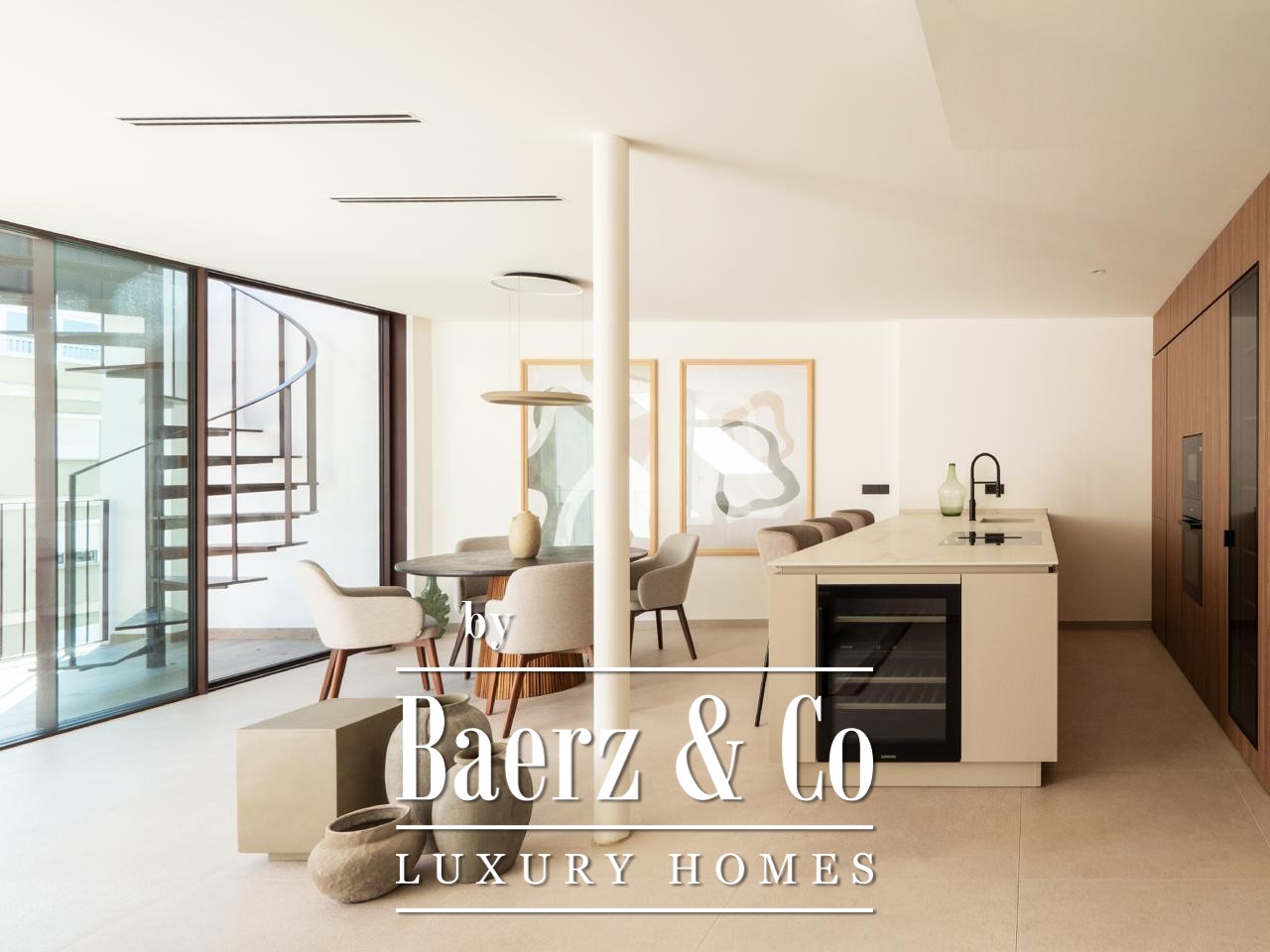 Пентхаус Palma сочетает свет и современный дизайн в районе Санта-Каталина. Это новое жильё, сдача которого запланирована на 2025 год, располагается в тихом уголке одного из самых престижных кварталов города. Пентхаус занимает 234 м² и включает три спальни и две ванные комнаты с элегантным, ненавязчивым стилем. Светлая гостиная плавно переходит на просторную террасу, создавая гармонию между интерьером и открытым пространством. Внешняя лестница ведёт с основного уровня на частную крышу площадью около 80 м², откуда открываются панорамные виды и уникальная перспектива на залитый солнцем горизонт Майорки.