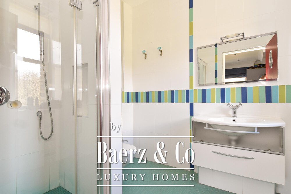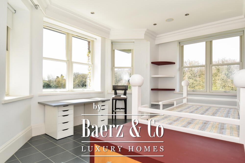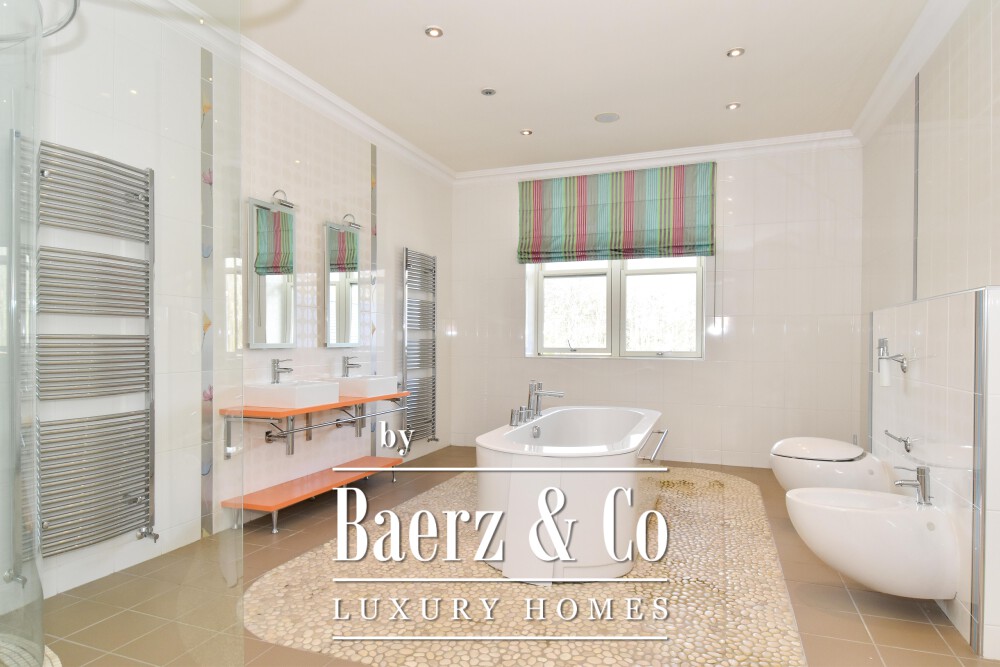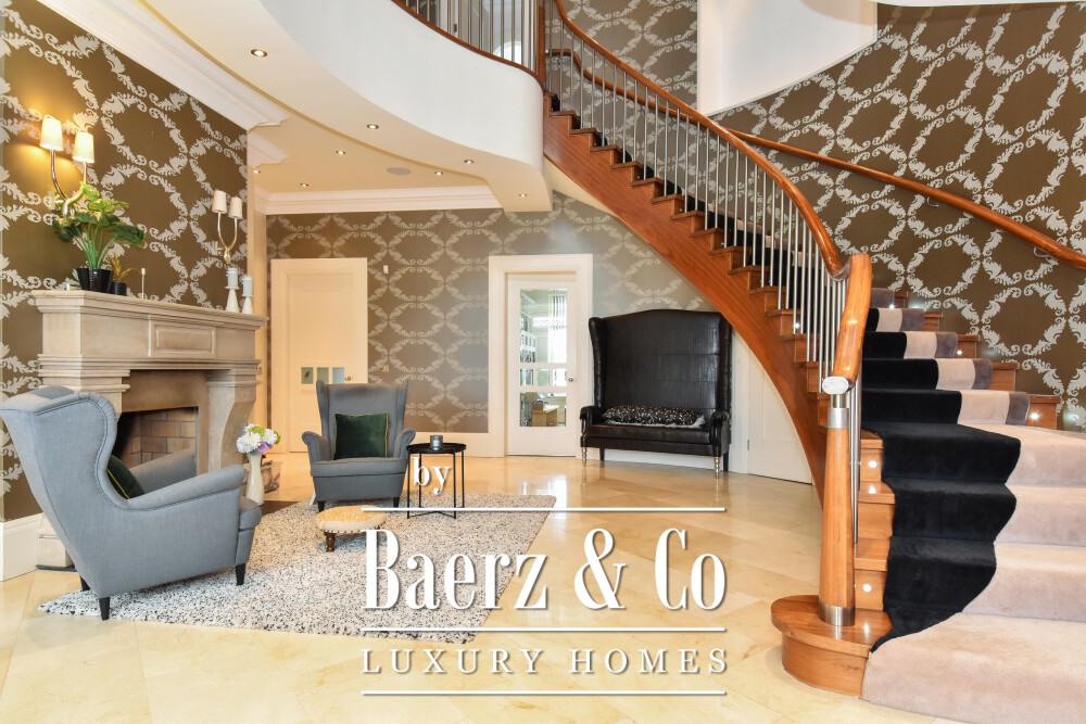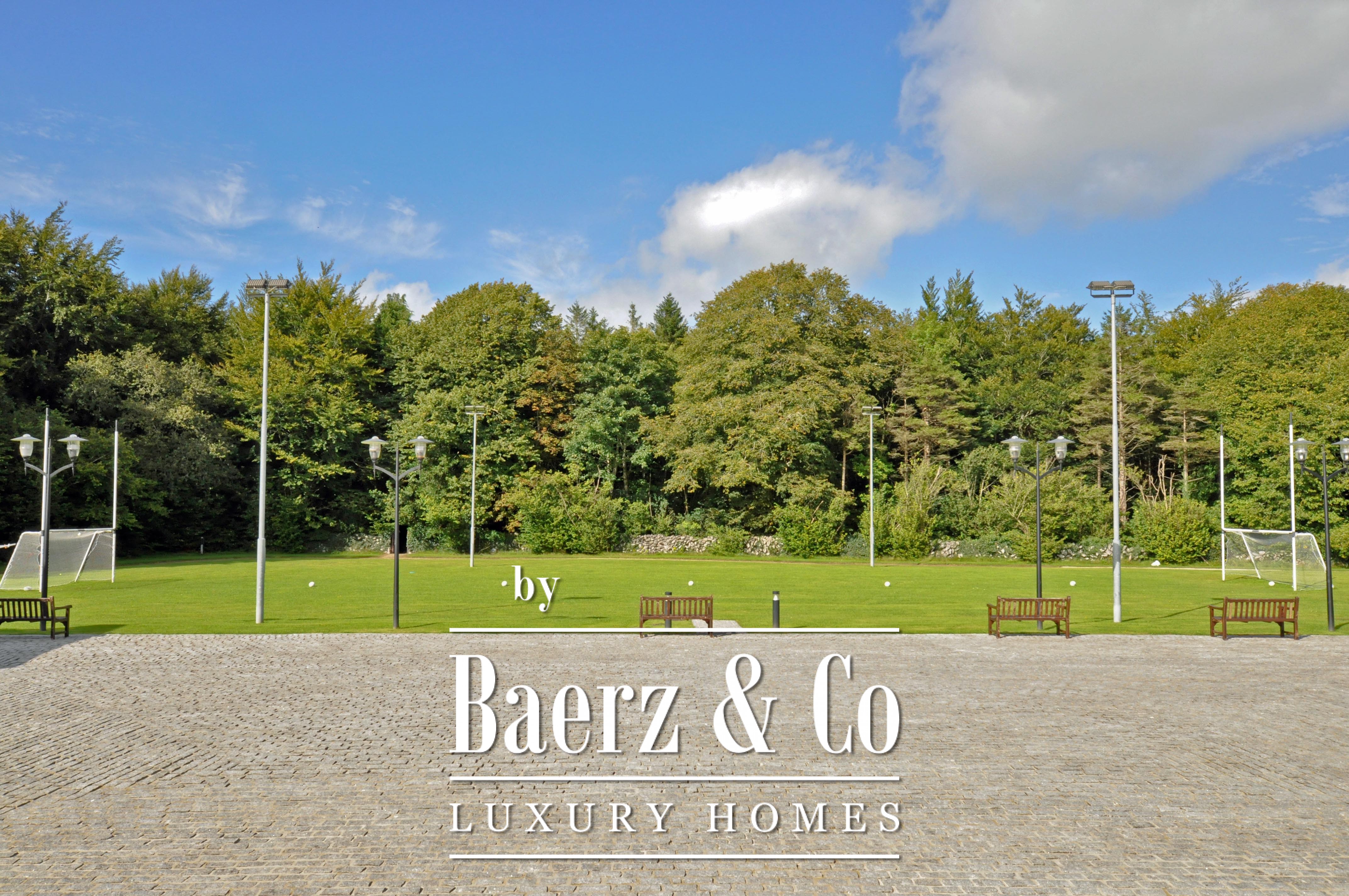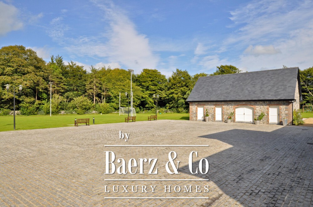 通透的采光、优美比例和精湛工艺贯穿始终,从精致石膏线到高档瓷砖、门与地板,无不彰显品质。娱乐健身空间丰富,包括游戏室、健身房、台球室和游泳房,满足四季休闲需求。户外配套齐全,设有带电视的热水浴缸、泛光照明网球场、四分之一足球场、四个马厩、栏杆草地及4公里花园步道,并有鹅卵石庭院满足大量泊车。