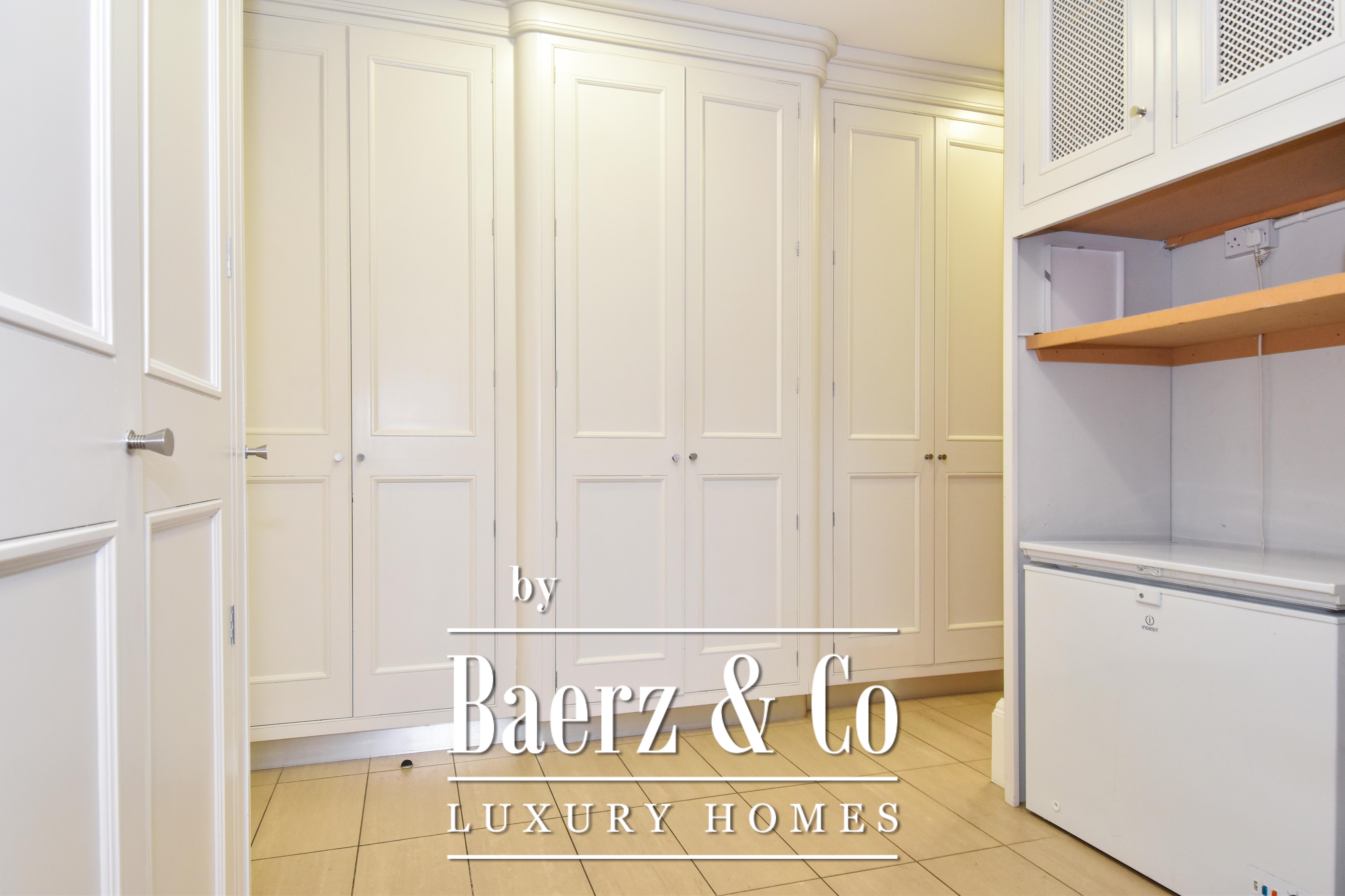 室内接待空间布局有序,包括三处起居区、一间宽敞厨房(配备Gaggenau电器和Aga炉)、以及设有吧台的专属休闲厅,既适合大家庭聚会,也适宜私密宴请。主宅中四间卧室设有独立卫浴,主套房配备双步入式衣帽间、带按摩浴缸的主卫和俯瞰修剪花园的私人阳台。