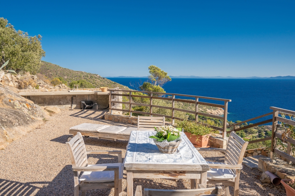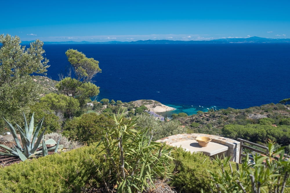 最初的别墅由知名建筑师于上世纪50年代设计,2000年代初进行了修复,保留了原有的风貌与建筑完整性。9000平方米的地块被层叠花园、地中海植被与成熟橄榄林环绕,私密静谧。主露台远眺蔚蓝海面、Arenella海滩、阿尔真塔里奥山与Giannutri岛。