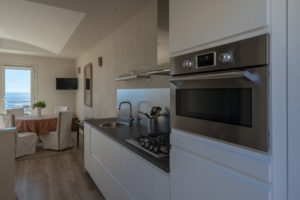 Isola del Giglio别墅坐落于岛屿东海岸,拥有海景与山景,总建筑面积达470平方米,是一处独特的地产综合体。主别墅通过步道与相邻建筑相连,共同承载四套公寓。第五套公寓则独立位于花园中,于2022年全新竣工。全部五套公寓均设有一间双人卧室和独立浴室,部分起居区还配备沙发床以灵活增容。整体而言,别墅通过精心划分的室内空间,最多可容纳18位宾客。