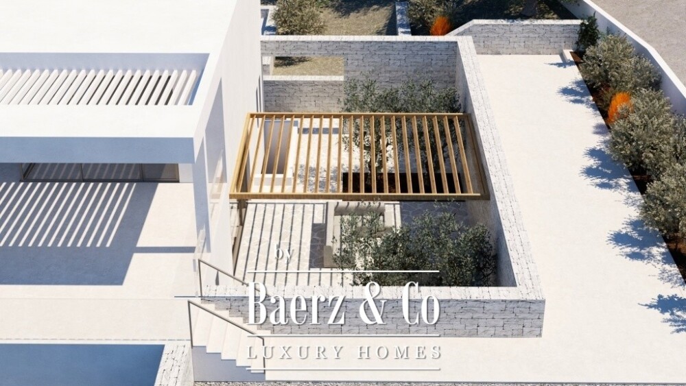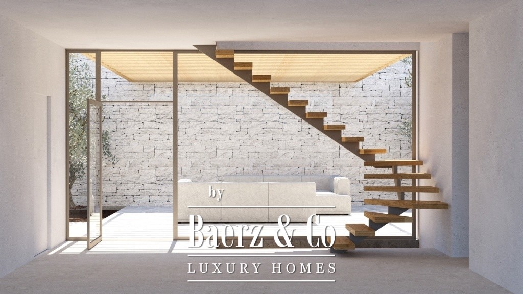 沿内部楼梯下行,步入更为私密的生活空间,其中设有另一休闲区与三间卧室,包括带步入式衣帽间的主套房。三间浴室和一间客用卫生间为这一层提供便利,并直接通向100平方米的铺石庭院、40平方米的游泳池与30平方米的遮阳烧烤区。每一细节皆彰显低调奢华与私密尊享。