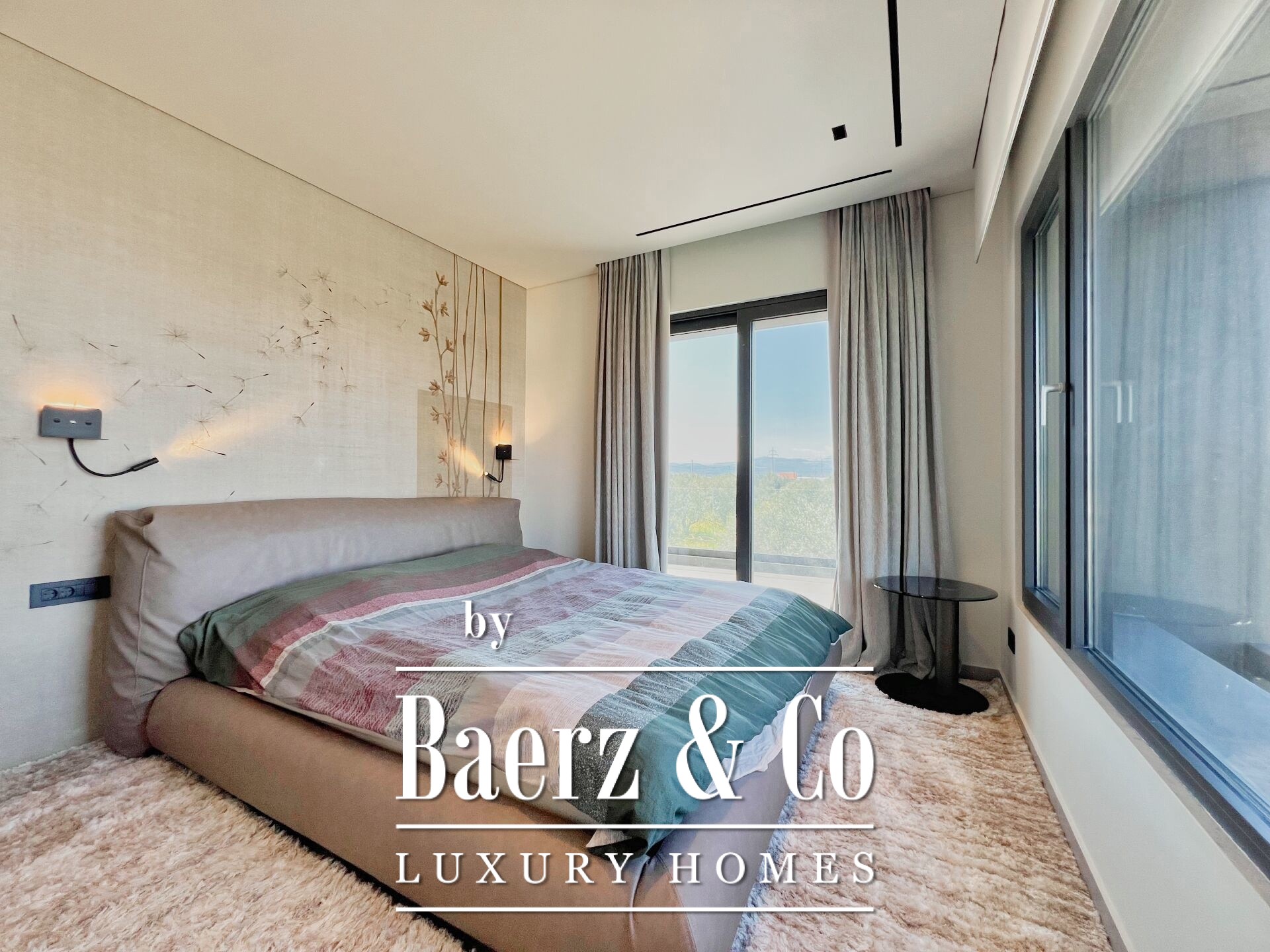 室外空间设有45平方米的生态盐水泳池、珍稀植物、建筑照明与全自动灌溉系统,营造地中海式惬意氛围。三座车库可容纳六辆汽车。安防系统包括摄像头、报警器与分区照明。别墅配以意大利设计品牌家具,迈勒(Miele)及NEFF高端家电,历经两年悉心使用。