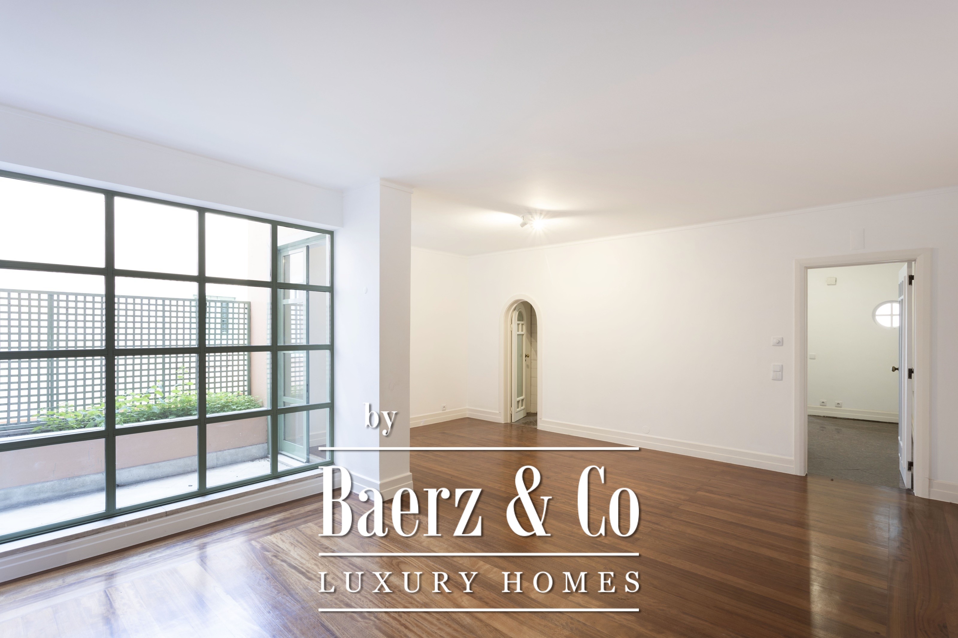 这套位于里斯本普林西比雷亚尔的复式公寓,坐落于城市最负盛名的社区之一,地处静谧,古典韵味与现代实用兼容并蓄。住宅面积达200平方米,分为两层,拥有三间卧室和灵活的布局,宽敞的生活空间与私属户外露台相得益彰。主起居与餐饮区采光充裕,并可直接通往隐蔽的庭院,适合安静的清晨或私密聚会。另一间多功能房可作书房或休憩区,壁炉为中心,并设有阳台窗。独立厨房配备储藏室和专属洗衣区,主卧套房设有独立浴室及专属阳台窗。