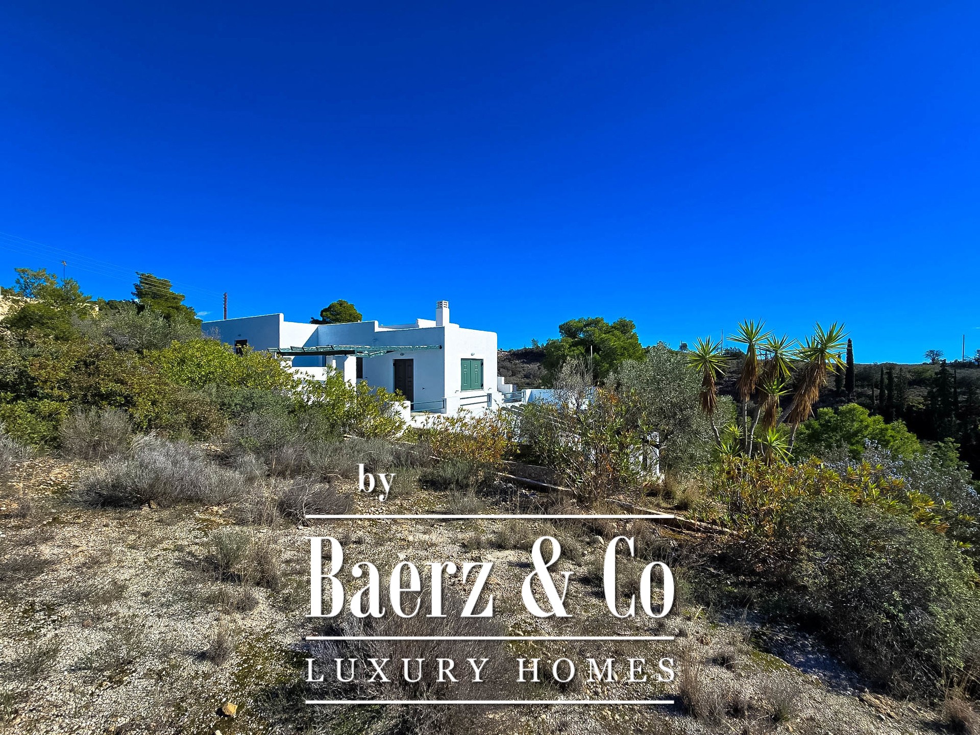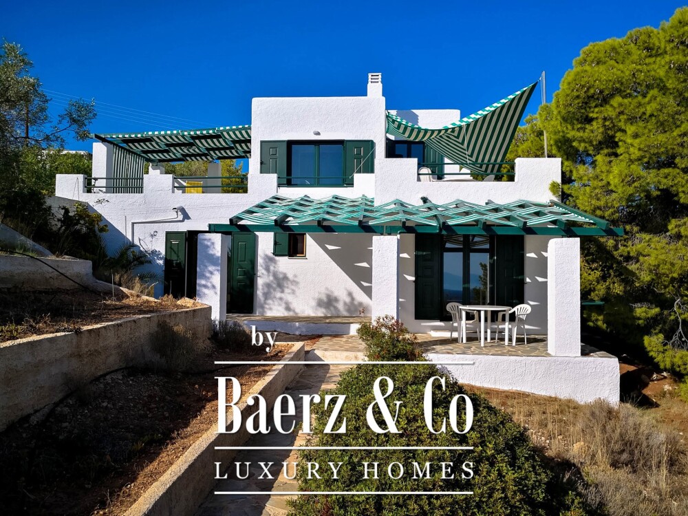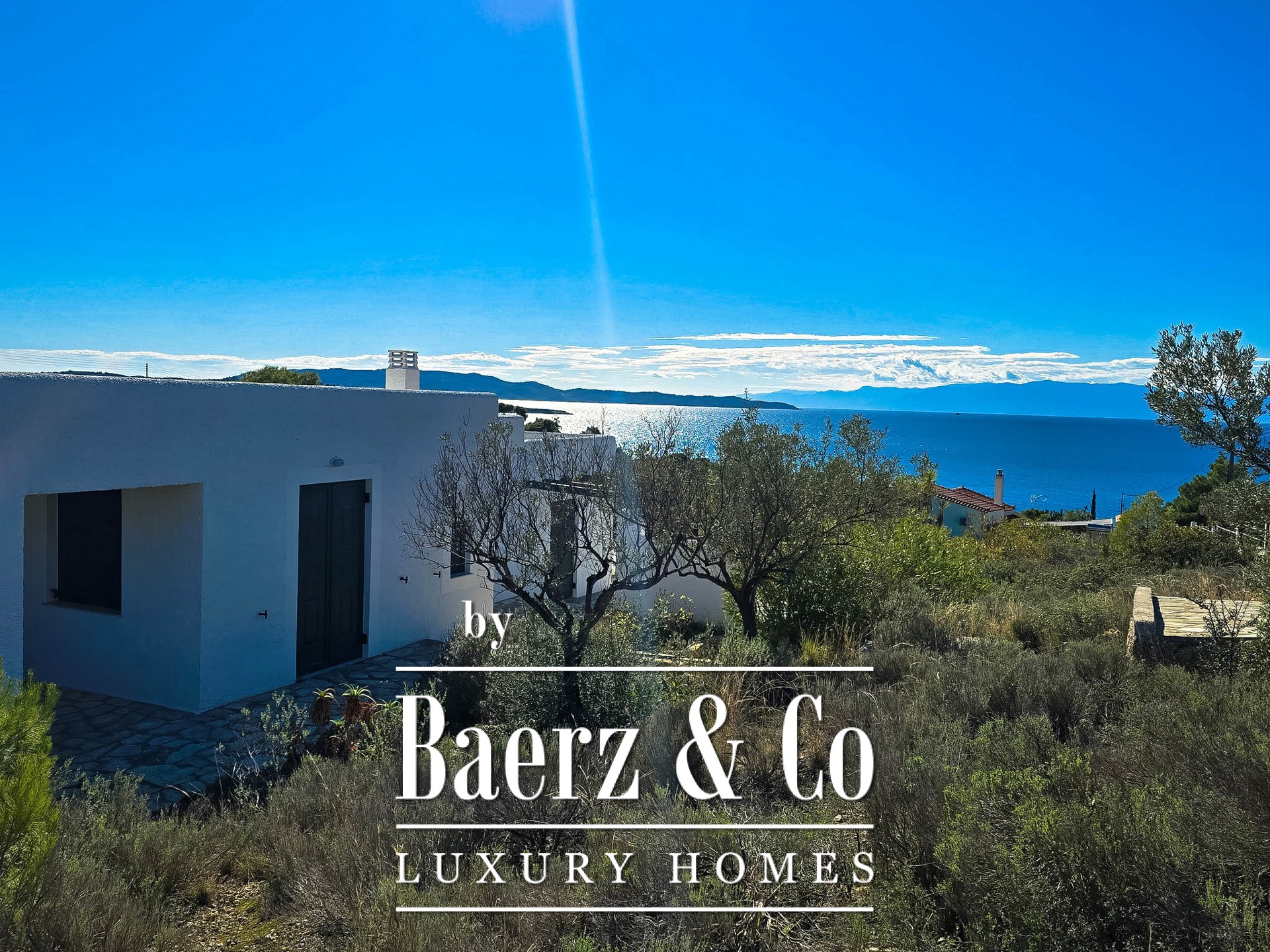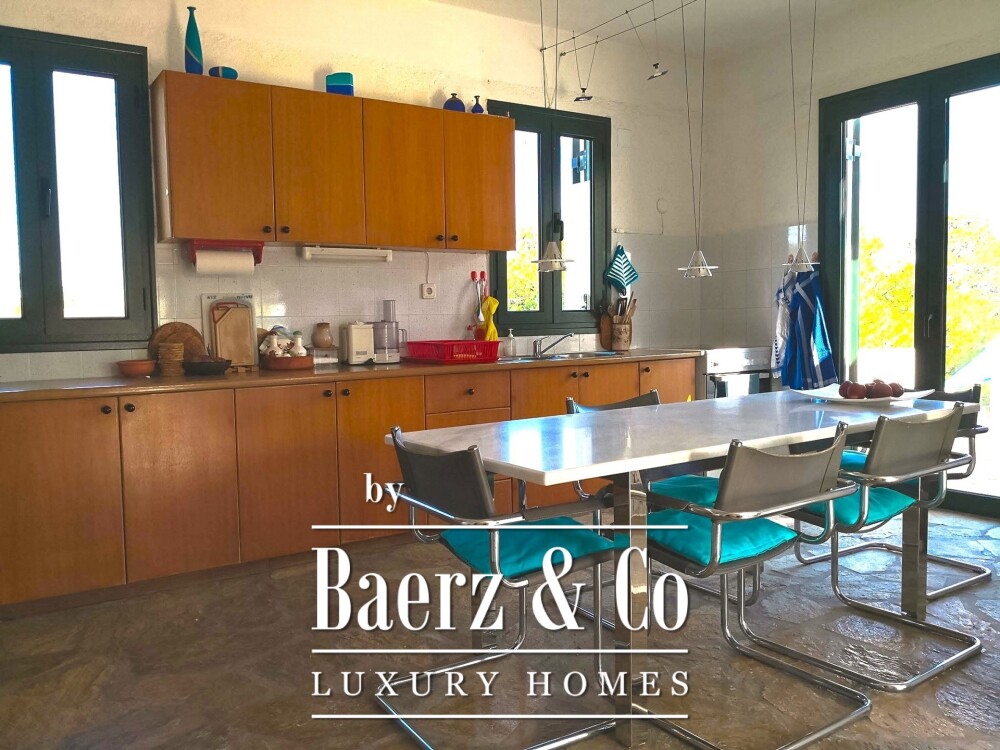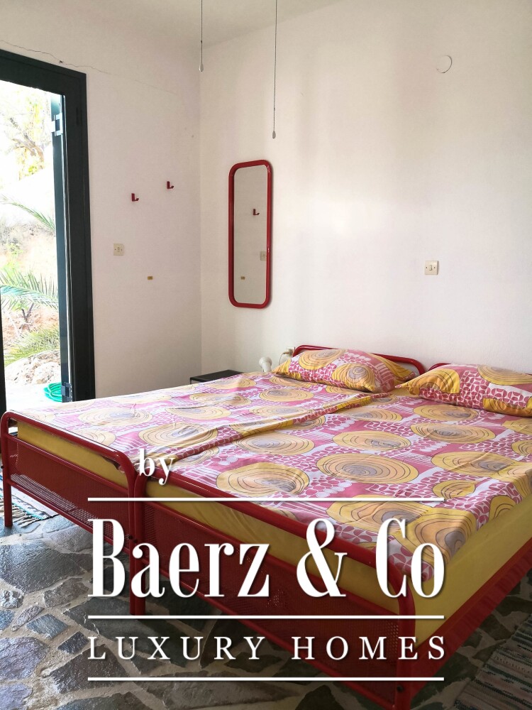 这座位于波托凯利的独立别墅坐落于5,800平方米的精心园林之中,被繁茂绿意环绕,距离海边仅350米。房产总建筑面积148平方米,分为两层,秉承基克拉迪建筑线条、白色粉刷墙体以及立体方形结构。多处开窗和宽敞露台,使室内空间正对开阔的海景与全景视野,光线与清新一览无遗。