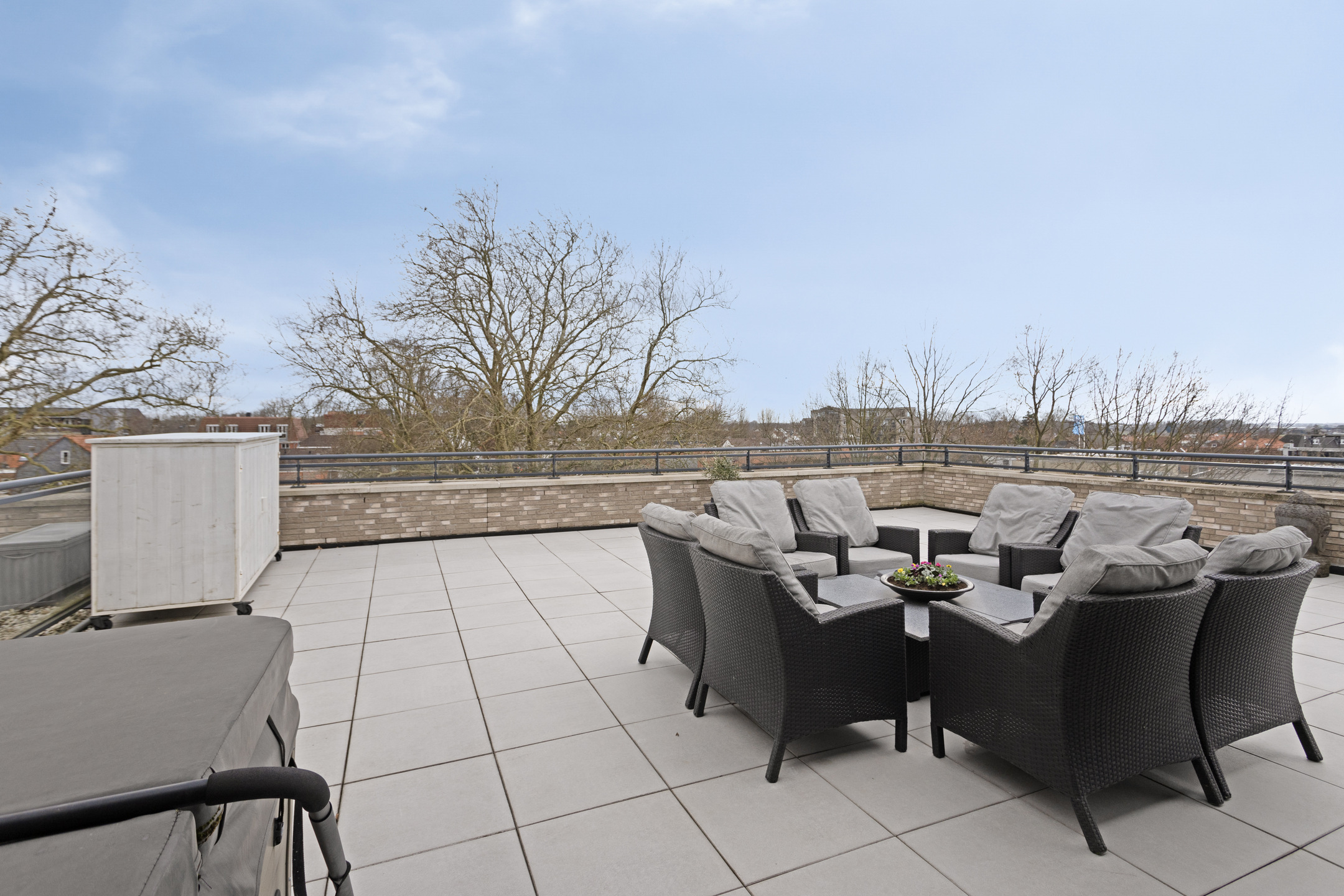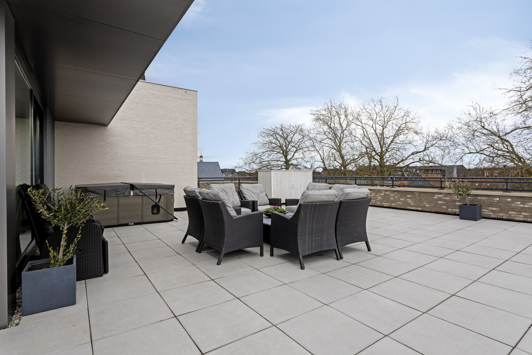 Steenbergen 顶层公寓在 2018 年竣工的 The New Villa 小区三层,匠心融合了私密性、品质感与当代生活的从容。这套 131 平方米的住宅配有三间卧室及独一无二的 165 平方米屋顶露台——如此宽阔的户外空间在城市生活中实属罕见。公寓精致工艺随处可见:Poggenpohl 厨房配备高端家电和花岗岩台面,客厅沐浴自然光线并以燃气壁炉为核心。每个房间均配地暖、空调、UTP 综合布线系统、电动卷帘以及智能枢轴门,现代舒适以低调高效方式全面实现。