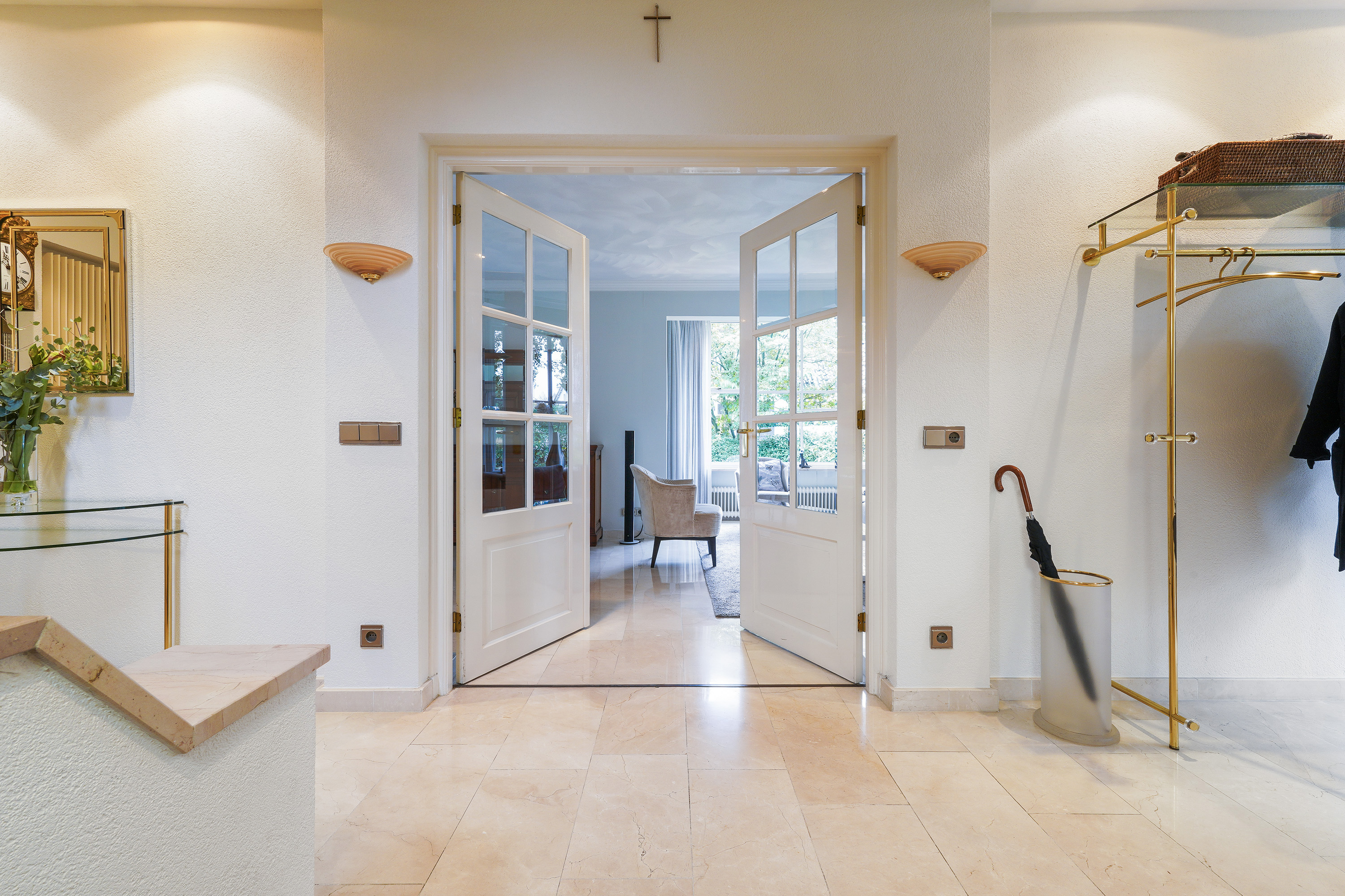 围绕宅邸,建筑师设计并悉心养护的花园宛如静谧绿洲。后方带顶阳台可用作休憩或储物,有门控铺装车道,保障车辆安全停放。空调、机械通风、部分双层隔热玻璃,以及有线电视和烟道等设施,为日常生活增添更多舒适。